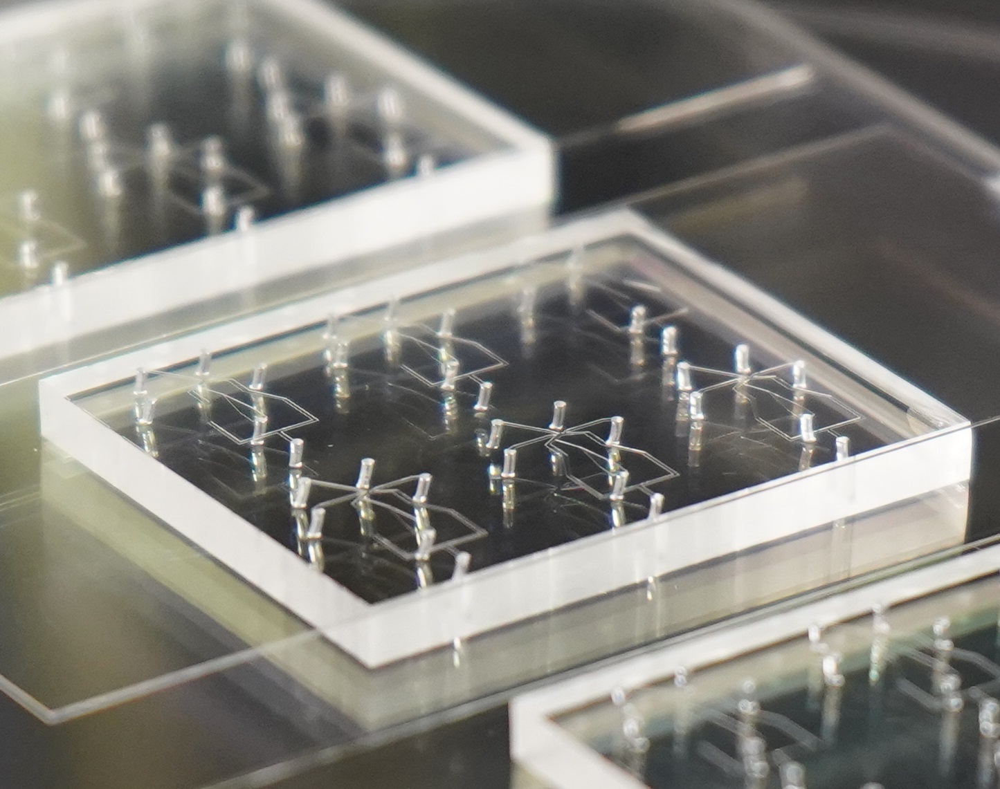 カバーに施された微細な溝内部の陰圧が、サンプル液を吸引して駆動。オイルとの合流部でドロップレットが次々と生成されます。